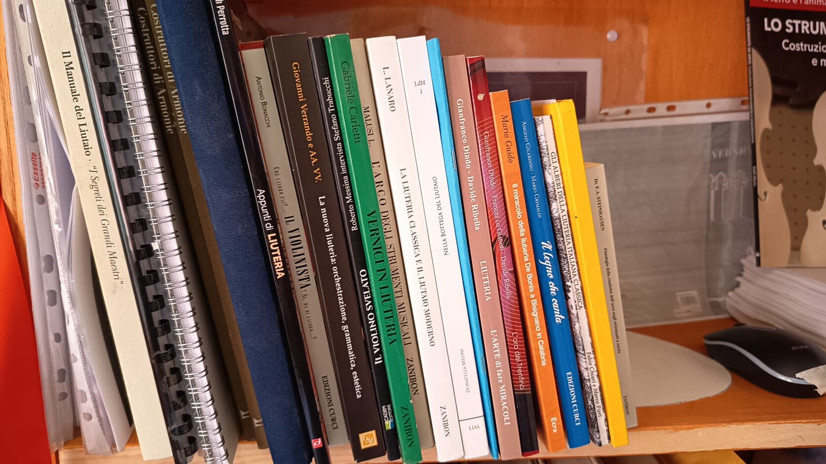 Alla nostra Residenza Artistica StrumentiAmo stiamo allestendo una biblioteca tradizionale specializzata in testi e tavole di liuteria, di mese in mese incrementeremo i volumi aggiornando i titoli qui.